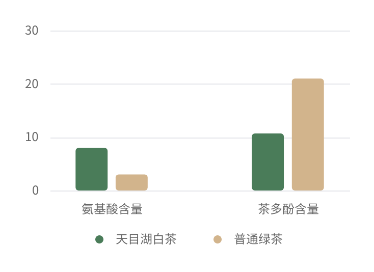 独特品质(白茶特点) 白化之谜:基因与自然的杰作白叶一号:温度敏感的奇迹独特的白化品种:天目湖白茶的茶树品种为“白叶一号”,属于典型的“温度敏感型”白化茶种。白叶青脉奇观:春季日均气温低于23℃时,叶绿素合成受阻,新芽呈现玉白色,叶脉却依然翠绿,形成独特的视觉效果。短暂的采摘期:随气温升高叶片复绿,采摘窗口期极短,造就了天目湖白茶的稀缺与珍贵。 正是这种独特的白化现象,让天目湖白茶积累了丰富的氨基酸,同时降低了茶多酚的含量。这使得它的口感格外鲜爽甘甜,这是其他绿茶难以比拟的。高氨基酸含量 (6.25%-9%)含量是普通绿茶的2-3倍,赋予茶汤鲜爽甘甜的口感。低茶多酚含量 (约10.7%)仅为普通绿茶的一半,有效降低了苦涩感,滋味更醇和。 感官品鉴:色、香、味、形 形 · 细秀绿润干茶细秀略扁,色泽绿润透金黄,白毫隐现。 色 · 鹅黄明亮冲泡后汤色鹅黄明亮,清澈如玉,赏心悦目。 香 · 馥郁芬芳香气馥郁,带有独特的栗香和兰花香,清幽持久。 味 · 鲜爽甘醇滋味鲜爽甘醇,入口顺滑,回甘持久,齿颊留香。